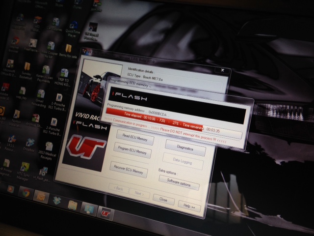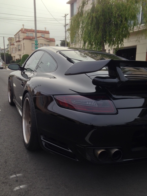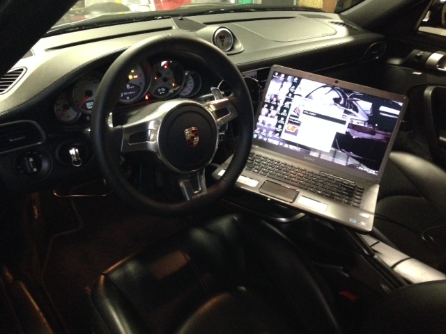 The Porsche 997 Turbo has the biggest gain out of any car we have seen on the dyno and driving in the real world. The car goes from the stock 480bhp to an incredible 615bhp. We have the dyno sheets to show this awesome wheel horsepower number on our Mustang Dyno here in Arizona (see below). Typical drivetrain loss on our dyno with 91octane is about 20-25%. Equipped with a GMG exhaust system and Fabspeed intake, this 997 Turbo is rippin the streets of San Francisco and the customer says, “The car drives great!” Check out the photo of his ride and his VR Tuned Flash process photos below. Shop all VR Tuned Products Here.