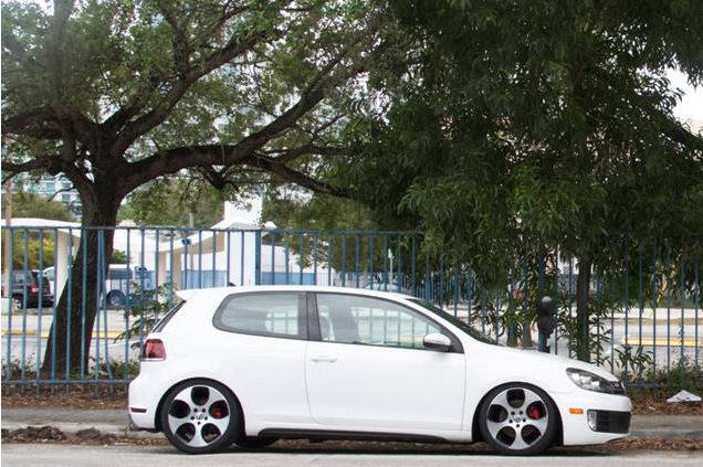 People who like Volkswagen’s don’t just like them, they allow them to infiltrate their daily lives. The VW Golf has its own cult following that will cut you if you say something against the Golf. We love hearing from people who know that love for your car is more than “passion” or a “hobby”, car love is a lifestyle, and we are fully committed. Here is a picture we just received from one of our customers. This VW Golf might not look all that superior on the outside, but a lifers like us know that you can have just as much finesse with whats under the car, than on top of it. We hooked him up with the best price on some H&R Street Performance SS Coilovers.