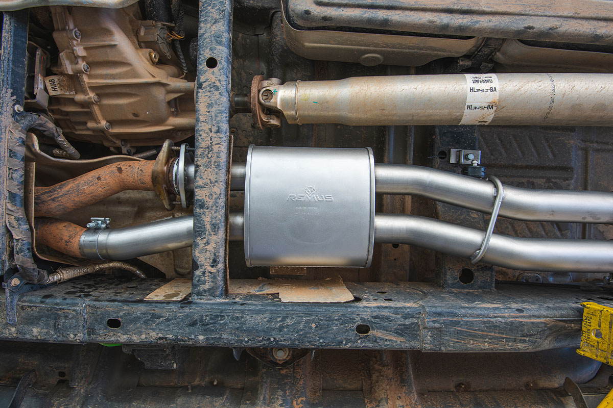 Compared to stock, the Remus exhaust is significantly louder. Whether you’re ripping down the trails or cruising down the street, it sounds awesome. The increased piping diameter and improved design results in more power, especially low-end torque thanks to Ford’s use of very small twin turbos. Be sure to check out the videos below for the full install and testing!