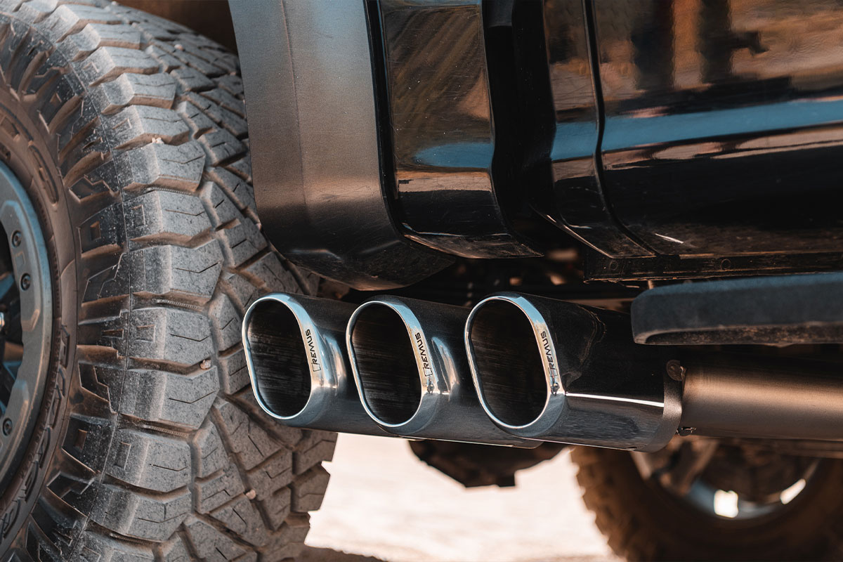 What makes the Remus exhaust unique compared to all the other Raptor exhaust systems on the market is their unique side-exit triple-tip design. Routing the exhaust to exit before the rear tire helps shed unnecessary weight and give the Remus exhaust a unique sound. On top of that, their unique triple-tips design is vastly different from anything else on the market.