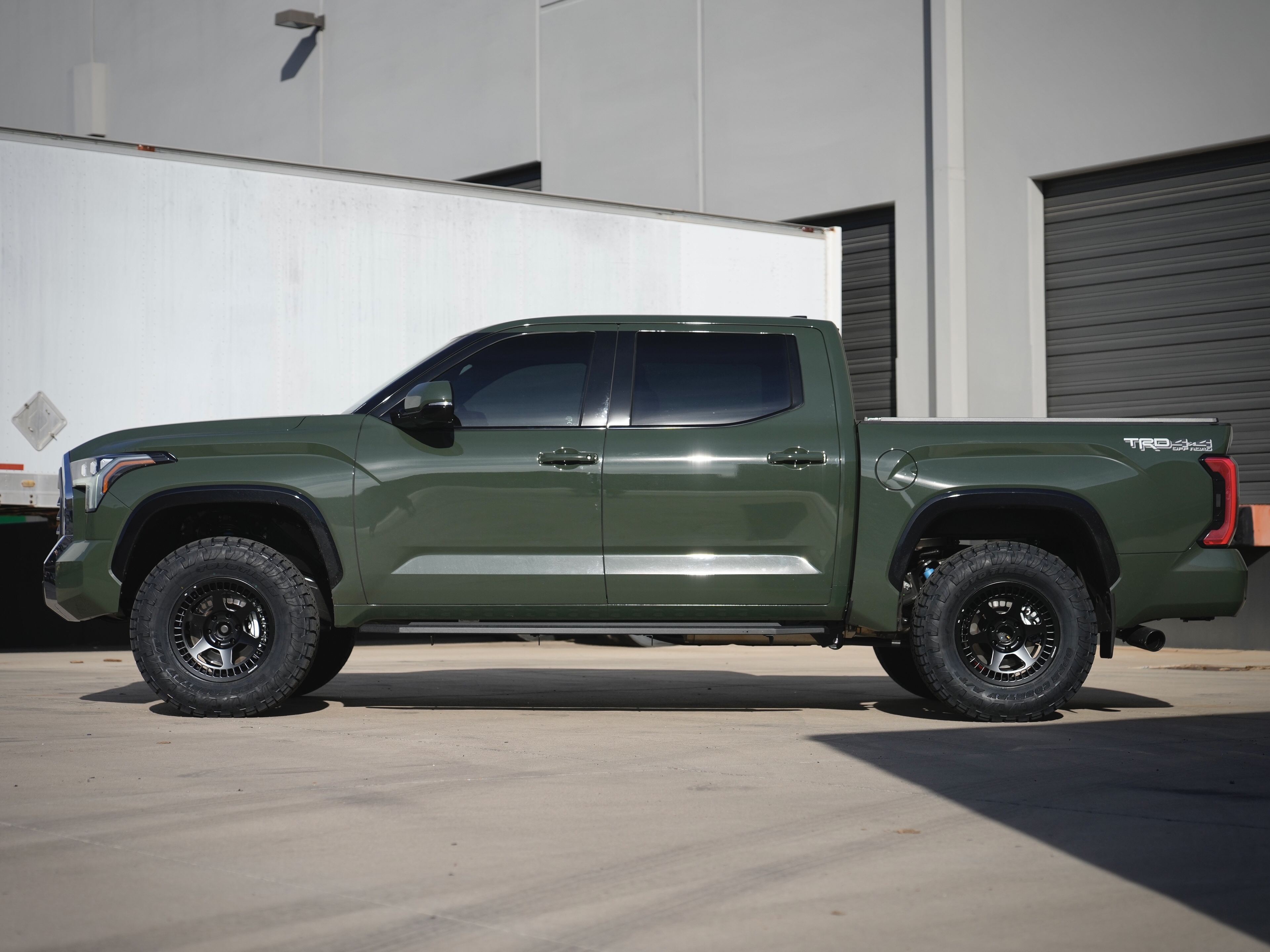 For this army green 2022 Toyota Tundra pictured below, Westcott Designs upgraded the wheels and suspension, both vital to the truck’s offroading capabilities. Westcott Designs upgraded the truck’s wheels to VR Forged D07. These wheels are made by VR Forged, which has a reputation for manufacturing the best quality wheels in the market, that provide enhanced looks, great ride quality, and exceptional performance.