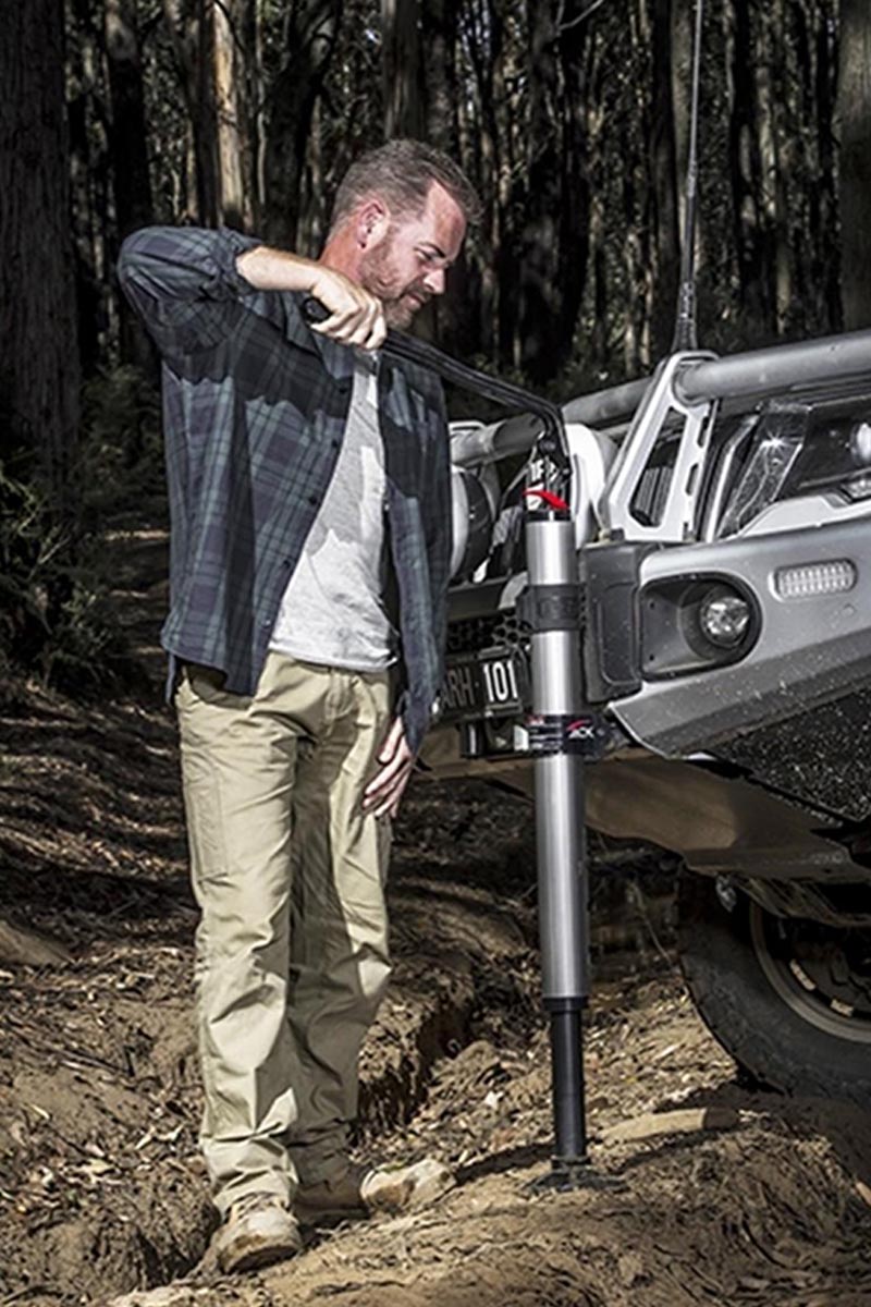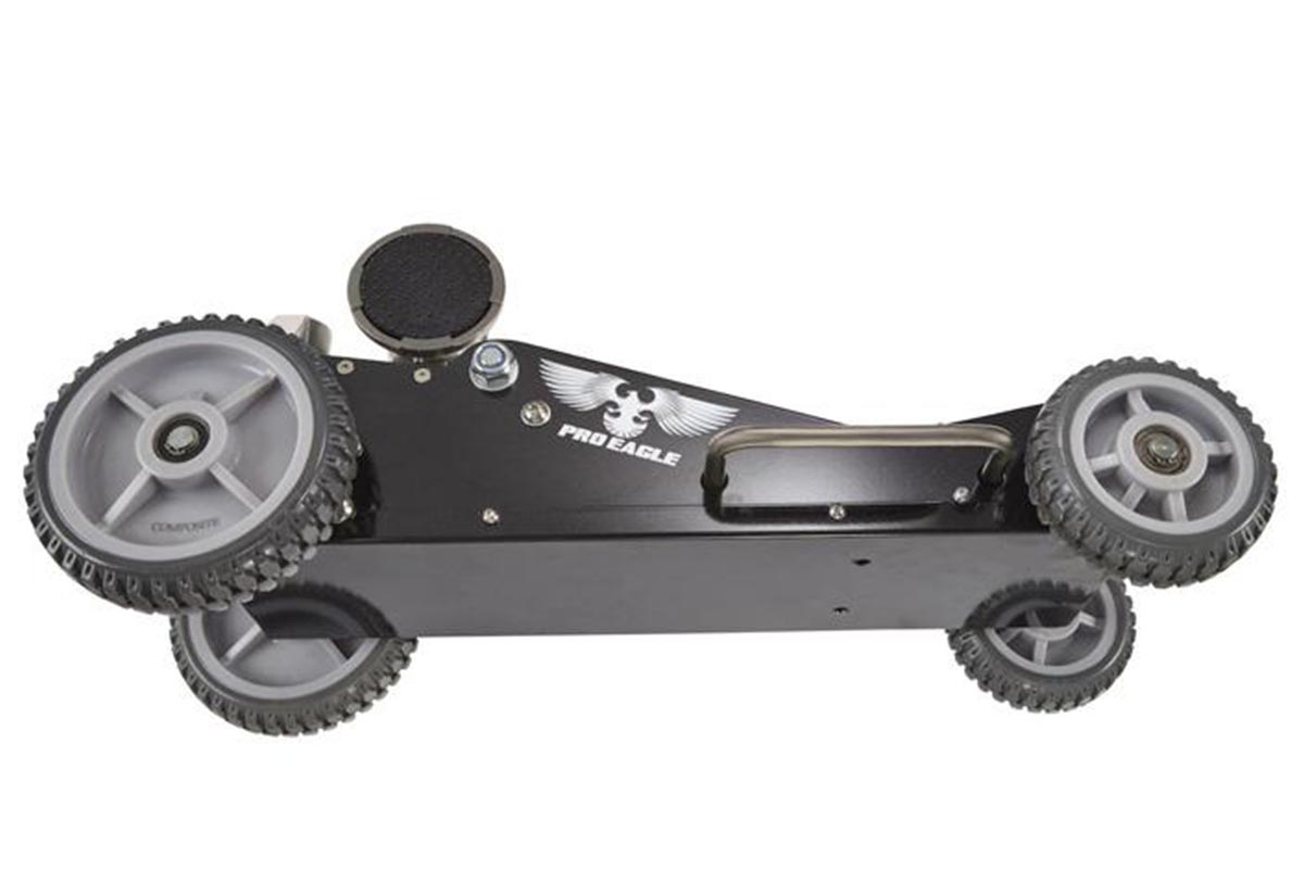 The larger off-road style wheel prevents the jack from sinking too far into the dirt or any loose surface. Being that the wheels disperse the weight across a larger surface area, the chance of sinking is decreased allowing for a sturdy lifting solution. Along with an off-road jack, owners can purchase specific mounting brackets to secure the jack to the vehicle that will keep it in place.