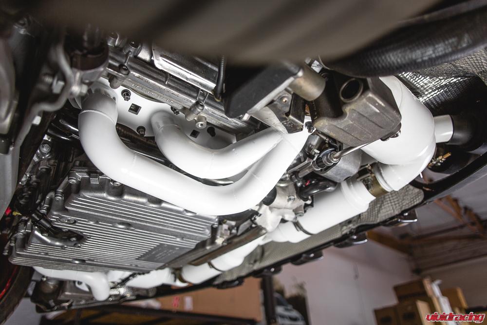 There are 2 reasons I decided to ceramic coat the complete Agency Power exhaust system on our Porsche 991 Turbo.  Reason numero uno is the performance factor and reason numero dos is all aesthetic.  After seeing how sick (badass, awesome, good looking, etc) the OEM exhaust on the Konigseigg we had here at the shop was, it was my mission to do this.  Typically ceramic coating is done in a gray or black on headers.  However to be “Vivid” and match this Konigseigg look, I did the full exhaust in white ceramic coating.  The coating is designed to do the following for your vehicle.