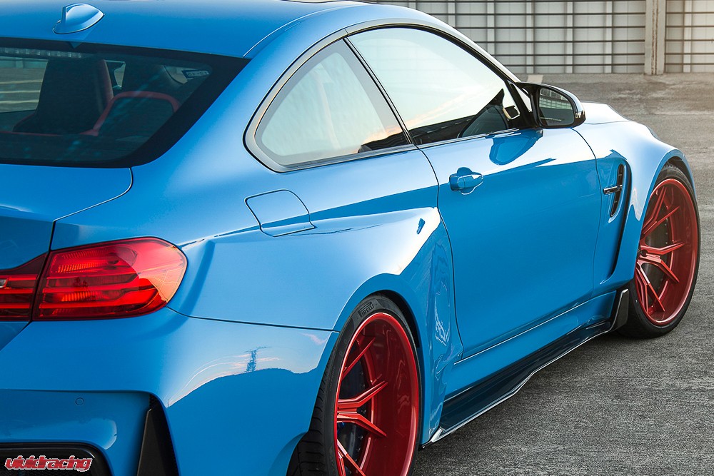 This striking Yas Marina Blue BMW F82 M4 features the Limited Edition Vorsteiner GTRS4 Wide body kit paired with their specially designed 3-Piece Forged wheels in 20×10.5 in the front and a respective 20×13.5 in the rear!!
