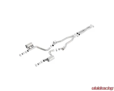 This system features the aggressive ATAK sound and a merge X-Pipe for increased performance and improved sound. This system includes MDS (multi-displacement system) valve simulators which ELIMINATE the MDS valves. This avoids any warning lights on the dash while providing maximum flow at all times. Tips NOT included. Use factory tips or optional BORLA tips 60729, 60729BC, 60729CFBA. BORLA Cat-Back & Axle-Back exhaust systems feature patented straight-through and multi-core technology to unleash hidden horsepower. Increased exhaust velocity adds power, driving excitement, fuel economy, and the distinctive BORLA Sound of Power respected by motoring enthusiasts everywhere. Each system is built from premium T-304 austenitic stainless steel, superior to T-400 series knockoffs (such as 409), to give you the absolute best in performance and durability. Ultra-smooth mandrel bends ensure maximum flow & power, and precision computer numerical control (CNC) manufacturing ensures an accurate fit. Best of all, BORLA stands behind every system with a Million-Mile Warranty. Just what you'd expect from the world's most experienced (and most winning) exhaust brand.