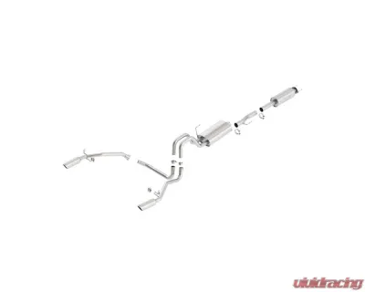Features bright chrome on T-304 stainless steel tips. System can also be used on Crew Cab Standard Bed (78.8") vehicles but requires 60554 Adapter. Borla Cat-Back & Axle-Back exhaust systems feature patented straight-through and multi-core technology designed to unleash hidden horsepower. Increased exhaust velocity adds power, driving excitement, fuel economy, and the distinctive Borla Sound of Power respected by motoring enthusiasts everywhere. Each system is built from premium T-304 stainless steel, superior to T-400 series knockoffs (such as 409), to give you the absolute best in performance and durability. Ultra-smooth mandrel bends ensure maximum flow & power, and precision computer-controlled CNC manufacturing ensures an accurate fit. Best of all, Borla stands behind every system with a Million-Mile Warranty. Just what you'd expect from the world's most experienced (and most winning) exhaust brand.
