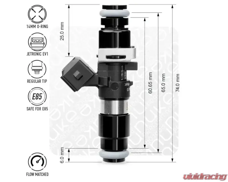 - Flow Rate: 1462cc/min = 1000g/min = 132lb/hr @ 3 BAR