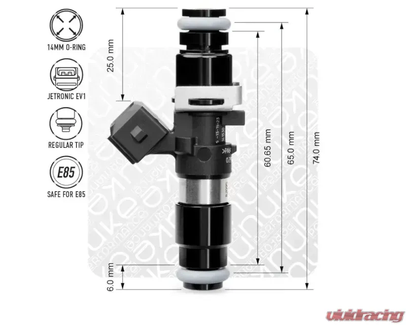 - Compatible with Bosch EV14L injector specifications, featuring a 65mm spacing between O-rings.