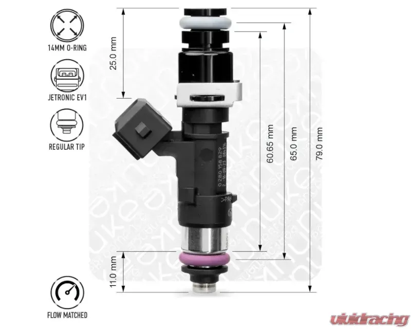 - Injector type with included adapters: 65mm EV14L (Long)