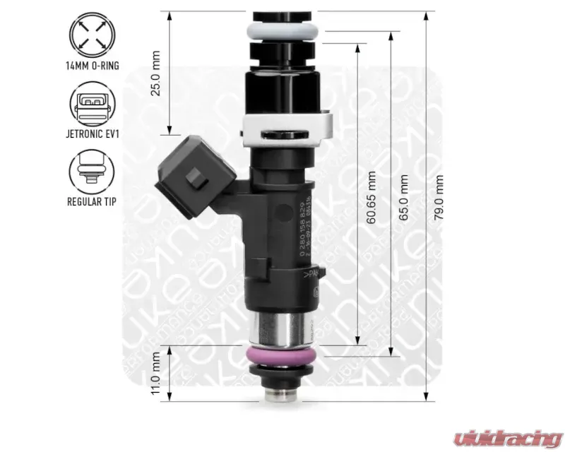 - Adapted to 65mm EV14L specifications, compatible with most Nuke Performance fuel rails