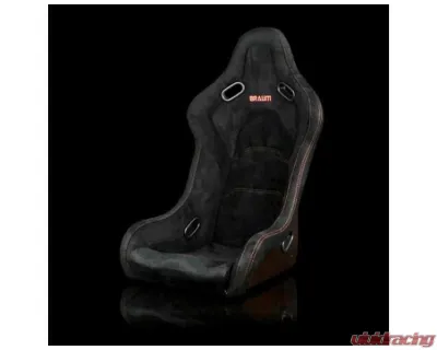 Braum Racing Falcon-S Series Fixed Back Bucket FRP Composite Seat Black Alcantara|Red Stitching|Red Glitter Composite (Each)