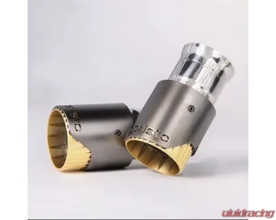If you're looking to enhance the look and sound of your McLaren 720S, the Capristo Exhaust 02ML11003022 end pipe shells might be just what you need. Crafted with care, these premium end pipes feature an aluminum outer sleeve that comes in a sleek Wicrom black velour color. The inner shell is available in a choice of anodized finishes—black, red, silver, or an exclusive chrome-plated gold velor—allowing you to customize your vehicle's appearance to match your personal style.