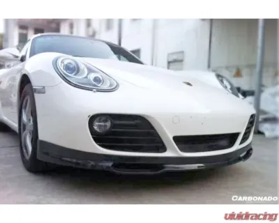 The Carbonado CF9314EM.L is an expertly crafted front lip designed specifically for the Porsche Cayman 987, model years 2009-2012. This component is constructed from high-quality carbon fiber reinforced plastic (CFRP), ensuring both durability and a lightweight profile that enhances performance without compromising structural integrity.