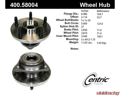 Centric Parts warrants to the original purchaser of this product ("Purchaser") that this product will be free from defects in materials and workmanship for a period of ninety (90) days from the date of purchase or for 3,000 miles of use of the product, whichever occurs first. If a defect in workmanship or materials is found in a product that has been PROPERLY INSTALLED, USED and MAINTAINED in the type of vehicle prescribed, and such product has been returned to a seller authorized to sell Centric Parts products within such warranty period, the product will be exchanged by Centric Parts free of charge.
