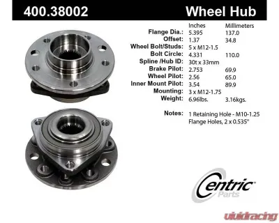 Centric Parts warrants to the original purchaser of this product ("Purchaser") that this product will be free from defects in materials and workmanship for a period of ninety (90) days from the date of purchase or for 3,000 miles of use of the product, whichever occurs first. If a defect in workmanship or materials is found in a product that has been PROPERLY INSTALLED, USED and MAINTAINED in the type of vehicle prescribed, and such product has been returned to a seller authorized to sell Centric Parts products within such warranty period, the product will be exchanged by Centric Parts free of charge.