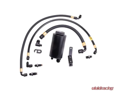 High-pressure rack to pump hose is -6AN stainless steel, Teflon PTFE lined & black Hytrel coated. This coating makes hose resistant to chaffing if it routes against metal or a fellow hose. The -6AN rack to reservoir & -10AN reservoir to pump hoses are abrasion resistant, poly lined, aramid inner. They are completed with high end black aluminum AN fittings & Metric to AN adapters for rack & pump conversion to AN.