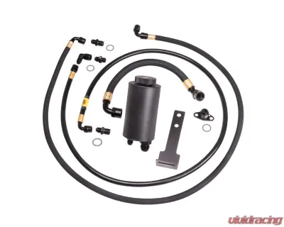 Triple Baffled Power Steering Reservoir Countless hours of research and development were put into our newest Power Steering Reservoir. This isn't as simple as putting 2 fittings on a fluid container and calling it a day. It is far more complex. The smaller fitting on the Reservoir is the fluid return from the rack. It can be sent back at pressures up to 120psi. When that hits the fluid in the reservoir it can cause extreme foaming aeration if not properly slowed down and directed. The more the steering and RPM on the car, the higher the pressures will be. This is also what commonly causes the spillover through the cap under heavy use. Most people think their fluid is boiling over when this happens but in most cases it is not'st turbulence.