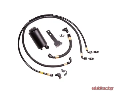 Our over-engineered Triple-Baffled Power Steering Reservoir (aeration & spillover proof) is at core of this kit. It optionally comes with upgraded Chase Bays Fluid Cooler that uses our bracket to mount on the lower core support for additional airflow. Our reservoir is constructed of 6061 aluminum & is anodized black with laser etched cap. Reservoir itself uses our aluminum bracket & can be mounted in stock location.