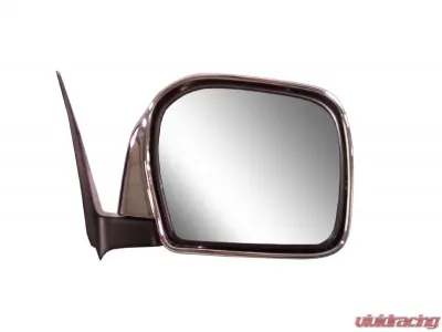 Original Style Replacement Mirror Replaces original equipment # 8791035840. Passenger side (right hand), power remote, chrome with black base, foldaway, non-heated, with convex glass.