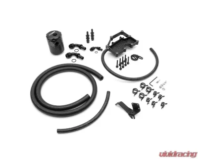 This Air/Oil Separator operates in series with the original PCV circuit, directing crankcase air through a swirl pot and a series of baffles. This design promotes the condensation of heavier oil particles in the blow-by vapor, allowing them to collect as liquid at the base of the canister. A dedicated drain line channels this liquid back to the crankcase, ensuring that oil particles do not re-enter the intake manifold.