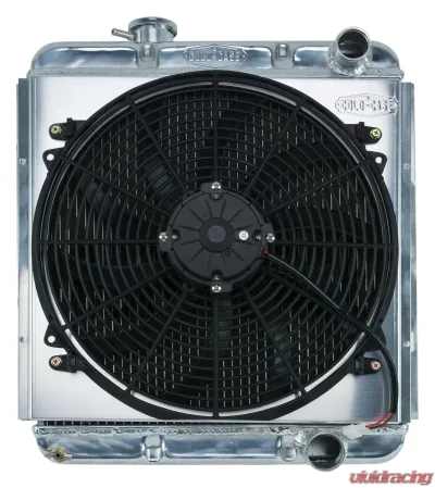 65-66 Ford Mustang 289 Aluminum Performance Radiator And 16 Inch Fan Kit AT Cars. These COLD-CASE radiators are Tig welded 100 percent aluminum and absolutely beautiful.