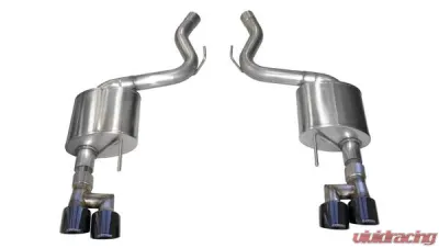 The Corsa Performance 21041BLK Axle-Back Exhaust System is specifically designed for the 2018-2019 Ford Mustang GT equipped with the 5.0L V8 engine. This exhaust system is crafted from high-quality stainless steel, ensuring durability and resistance to corrosion while delivering a refined appearance that complements the aggressive styling of the Mustang.