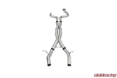 The Corsa 21321 is a precision-engineered 3.0-inch double X-pipe designed exclusively for the 2022-2024 Cadillac CT5-V Blackwing equipped with a 6.2L V8 engine. This aftermarket component replaces the restrictive factory piping located near the rear axles, significantly improving exhaust flow and overall performance.