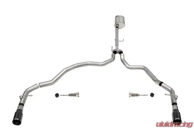 The Corsa 21155BLK catback exhaust system is engineered specifically for the 2021-2022 Ford F-150 Regular Cab with an 141.5" wheelbase. This exhaust system is crafted from premium 3.0" 304 stainless steel, ensuring durability and resistance to corrosion, while offering a sleek, polished finish or an aggressive black PVD coating to match your truck's aesthetic.