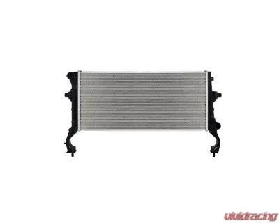 This radiator features OEM specified plastic tank-aluminum core construction, ensuring durability and efficiency. The tanks are crafted from virgin grade engineered plastic resins that are glass-filled for enhanced strength, making them resistant to cracking and warping under high temperatures.