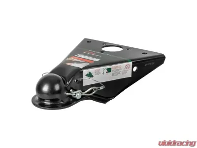 The QuickPin trailer hitch coupler is fully tested according to SAE J684 specifications, ensuring that the coupler is safe and reliable to tow your trailer. This A-frame model is rated for 14,000 lbs. gross trailer weight. It accepts a standard 2-5/16" diameter trailer bAll and can be mounted onto an A-frame trailer tongue with a 50-degree angle.