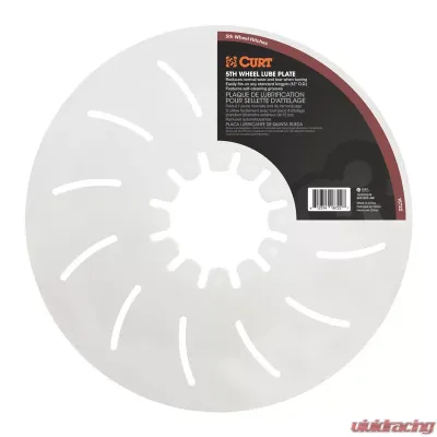 The grand lifestyle that goes hand in hand with 5th wheel towing is made perfect in the details. You can talk all you want about whose RV hogs the most road or whose 5th wheel hitch can handle the most tonnage, but when you get down to it, the best hitch and trailer setup in the world can never reach its full potential without the right accessories to back it up. Protect your 5th wheel hitch and 5th wheel trailer with a CURT lube plate. This 12" disc easily slides onto the kingpin of your 5th wheel trailer, eliminating messy grease deposits and reducing normal wear and tear when towing with your 5th wheel.