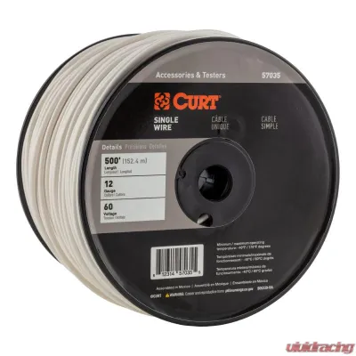 CURT automotive primary wire is engineered for dependable performance, boasting a 12-gauge wire thickness to ensure reliable connectivity in trailer setups. With the standard white trailer wiring color, it simplifies rewiring tasks. Rated for 60 volts, it's perfect for both trailer rewiring and automotive electrical repair applications. Its robust design withstands temperatures from -40??F to 176??F, providing consistent operation in harsh environments and extreme operating conditions. Offering a substantial 500-foot length, this wire spool caters to diverse wiring needs, empowering users, whether professionals or DIY enthusiasts, to execute projects with confidence and precision for a consistently reliable electrical connection.CURT 57035 Automotive Primary Wire, White 500-Foot Trailer Wiring Spool, 60-Volt, 12-Gauge