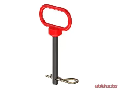 This clevis pin with handle features a high-strength steel construction for dependable towing power, and it has a durable black powder coat finish to ensure long-lasting resistance to the elements. The pin has a diameter of 1/2 inch and measures 3-5/8 inches long.