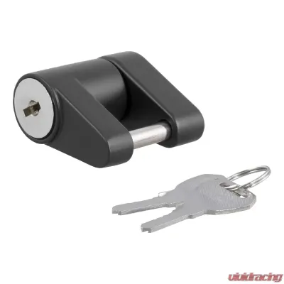 Sometimes a safety pin and coupler latch are just not enough to keep your toys safe. While CURT safety pins and coupler latches are made to keep your coupler securely latched onto your trailer ball, they are no substitute for the locking power provided by a CURT coupler lock. CURT coupler locks are designed to add security to your trailer and towing equipment. Instead of merely retaining the coupler latch mechanism, they lock it into place and greatly deter any tampering and theft of your trailer while it is coupled to your vehicle. CURT coupler locks are key-operated and come in several different styles for you to choose from. This coupler lock features a padlock design to keep the pin well protected from tampering. It comes with a black finish and offers a pin span of 3/4" with a pin diameter of 1/4". All CURT coupler locks are made to fit latch-type couplers and include two keys. Protect your boat, your camper and even your utility trailer the right way with a CURT coupler lock.