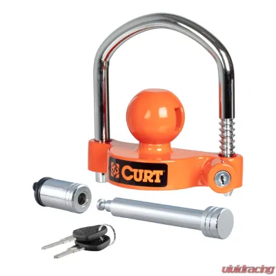 Make your tow vehicle and trailer more secure by keeping them locked up tight with this CURT hitch and coupler lock set. The CURT universal trailer coupler lock offers full compatibility with trailers equipped with 1-7/8", 2" or 2-5/16" couplers. Its ratchet-style mechanism allows for easy, effortless trailer coupler security. Just insert the lock base into the coupler and slide the U-bar over the coupler's nose, engaging the lock. Unlocking is a breeze ??? a simple quarter turn of the key frees the lock. The ratcheting U-lock combats theft and ensures extended security by immobilizing the lock base within the coupler, thwarting any attempt at removal. Its bright orange powder coat finish deters thieves and enhances visibility, allowing you easily spot tampering or interference from a distance. The U-lock, lock base and ratcheting mechanism are made to be corrosion-resistant, ensuring long-lasting durability and prolonged security. The thick and durable bright orange powder coat finish protects against sun, water and weather, effectively deterring theft, while maintaining visibility and safeguarding against dings and scratches. The included hitch lock in this lock set features a barbell design and comes with a 5/8" pin diameter to fit a 2" or 2-1/2" receiver tube size. CURT barbell hitch locks are comprised of a pin with two end caps and a round locking mechanism. They are key-operated and activate with a simple 1/4-turn. They also come with watertight dust caps to keep out the elements and prevent corrosion.CURT 23092 Hitch & Coupler Lock Set, Fits 2" or 2-1/2" Receivers, 1-7/8" to 2-5/16" Couplers