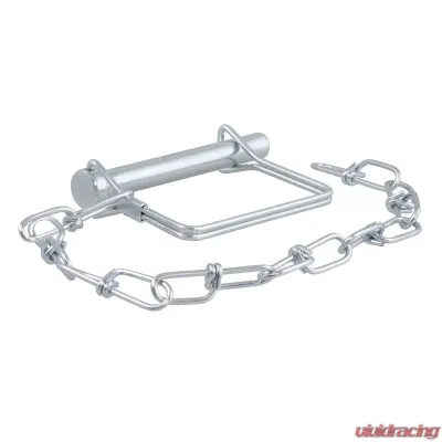 CURT safety pins go beyond the simple function of keeping your coupler latch secure. They are constructed from quality materials and have a universal design that allows them be used for a variety of purposes in your towing setup. CURT safety pins are made from solid steel to provide more than enough strength to keep your trailer coupler latched down tight. The zinc plating that we use to finish our safety pins offers excellent protection against rust and corrosion. This is necessary for any trailer because of its frequent exposure to the elements. The user-friendly design of our safety pins allows them to be easily handled while maintaining effective security. This safety pin has a pin diameter of 3/8" and includes a 12" chain attachment to mount onto your trailer coupler and prevent the safety pin from being misplaced. Use CURT safety pins for securing trailer couplers, jacks, caster wheels and more. When you couple your trailer to your vehicle, nuts and bolts just do not cut it. Secure your towing equipment right with a safety pin from CURT.
