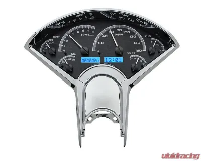 The 1955-56 Chevy car dash is lacking in information; MHX-55C makes use of the iconic factory gauge cluster, filling it out with six analog readouts on top of dual LCD message centers. Able to be used with factory or reproduction bezels (sold separately). Factory gear-indicator is eliminated; use GSS-3000 for full gear-word readouts in the message centers.