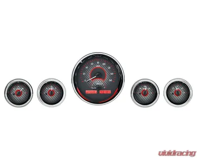 Made popular by the '59 Chevy Impala, this contemporary five gauge layout lends itself to an enormous amount of flexbility. With the larger instrument measuring 6-1/4" overall (5-7/8" Cutout) and the four smaller gauges at 3" (2-3/4" Cutout), this is one distinctive choice. Chromed billet aluminum housings and bezels round out the package.