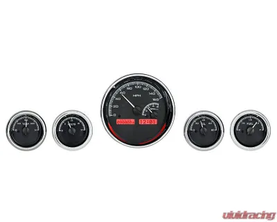 The Dakota Digital MHX-1022 larger instrument measures 5-1/2" overall (5" Cutout) and the four smaller gauges at 3" (2-3/4" Cutout), this is one distinctive choice. Chromed billet aluminum housings and bezels round out the package.