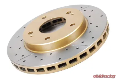 Looking to upgrade your Mini Cooper R56's braking system? The DBA Front Slotted & Drilled Street Gold Series Brake Rotor is just what you need! This rotor not only boasts impressive performance benefits but also adds a touch of style with its eye-catching gold finish.