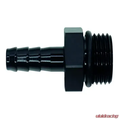 Introducing the 10AN ORB Male to 3/8 Inch Male Triple Barb Fitting (Includes O-Ring), finished in a sleek Anodized Matte Black. This fitting is designed to meet your needs with style and durability.