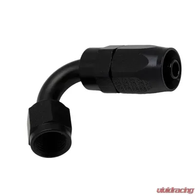 Introducing the 6 AN Female Flare Swivel 120-Degree Hose End, finished in a sleek Anodized Matte Black. This fitting is designed to enhance your setup with style and functionality.