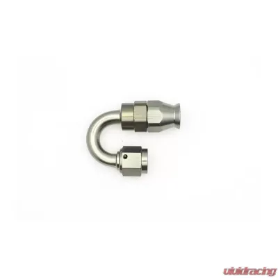 Introducing the 6AN Female Swivel 180-Degree Hose End PTFE, complete with one olive insert and finished in a sleek anodized DW Titanium. It's the perfect addition to your setup!