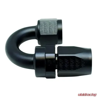 Introducing the 8AN Female Swivel 180-Degree Hose End CPE, finished in a sleek Anodized Matte Black. This fitting is designed to meet your automotive needs with style and functionality.