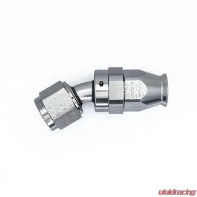 Introducing the 6 AN Female Flare Swivel Hose End! This versatile fitting features a 30-degree angle and comes complete with a ferule and olive. Crafted from durable T6061 aluminum and finished in a stunning anodized DW Titanium, it's designed to meet your performance needs.