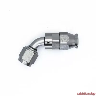 Introducing our 6 AN Female Flare Swivel Hose End, complete with a ferule and olive, designed at a convenient 60-degree angle. Made from high-quality T6061 aluminum and finished in a stunning anodized DW Titanium, this hose end is both stylish and durable.