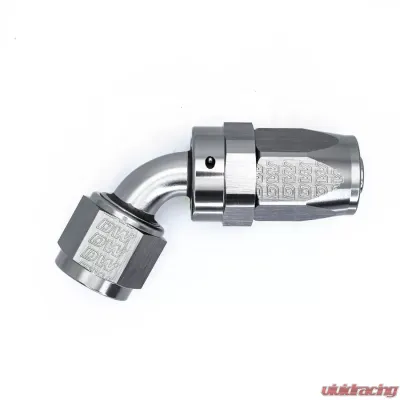 Introducing the 8 AN Female Flare Swivel 60-Degree Hose End in a stunning DW Titanium finish! This high-quality fitting is designed to add a sleek touch to your setup while ensuring reliable performance.