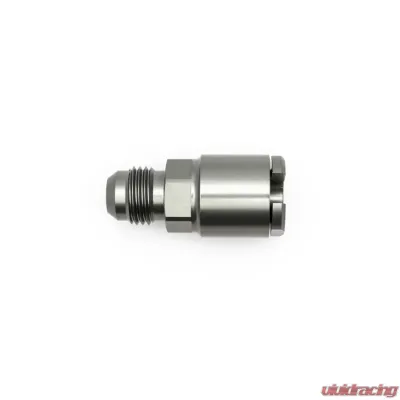 Introducing the 6AN Male Flare to 1/4 Inch Female EFI Quick Connect Adapter, beautifully finished in Anodized DW Titanium. This adapter is designed to make your connections smooth and reliable.