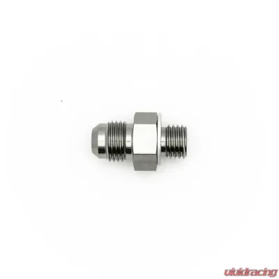 Introducing the 6AN Male Flare to M12 X 1.5 Male Metric Adapter, complete with a crush washer and finished in a sleek anodized DW Titanium. This adapter is designed to meet your automotive needs with style and functionality.