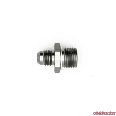 Introducing the 6AN Male Flare to M18 X 1.5 Male Metric Adapter, complete with a crush washer and finished in a stunning Anodized DW Titanium. This adapter is designed to make your connections seamless and reliable.